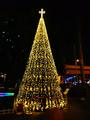 傍晚时分,暮色笼罩着荒凉的村庄。远处,一点微光自十字架上静静泛起,伴着清晰的赞美诗声飘来——“主,这是我的手,这是我的心……”那声音在冷风中显得格外清亮,我们的心也随之被照亮,不禁加快脚步,向着教堂走去。