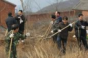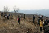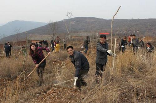 2012年3月9号晋城市城区基督教会闫美玲、赵福宁、李建忠等8位同工,陪同城区区委领导及群众100余人,在泽州县大箕镇石门村的北岭东谷堆山坡的荒山上进行了义务植树活动。