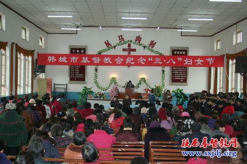 2012年3月8日下午,陕西省韩城市基督教会在吉家寨教堂举行了纪念 “三•八”妇女节文艺活动。有60多位弟兄姐妹参加了演出,到场的会众有400多人。韩城市民宗局杜耀东科长、陈娟花同志莅临演出会场。