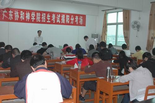 广东协和神学院2012年度招生考试在揭阳市培训中心设立分考场,于4月18-19日两天与广东协和神学院考场同时进行。