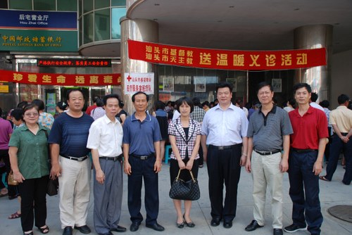 2012年6月27日上午,汕头市基督教的教牧同工和教会医疗室的医生一行十七人,并联合天主教黄炳章主教带队的天主教医疗队响应政府举办宗教慈善月活动的号召,服务人群,造福社会,为构建和谐社会尽上教会的一份力量。