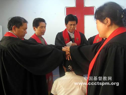 按牧典礼由山东省基督教两会副主席、副会长、总干事任现民牧师主持,省基督教两会副主席、副会长李洪玉牧师证道,李牧师从摩西三个四十年劝勉两位接受牧师圣职的同工,要以摩西为典范爱民族、爱国家、爱羊群,凡事做羊群的好榜样。菏泽市基督教三自爱国运动委员会主席田素良牧师、副主席张镇牧师和孟玉英牧师按手。