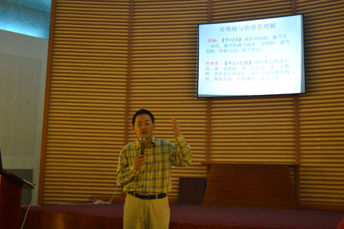 2012年8月30日晚,北京丰台教会工商团契查经聚会如期举行。许建平弟兄为大家分享“耶稣领导力”之“对领袖与管理者的理解”,以此帮助工商团契肢体们在事工中分清角色,有效发挥各自的职能。