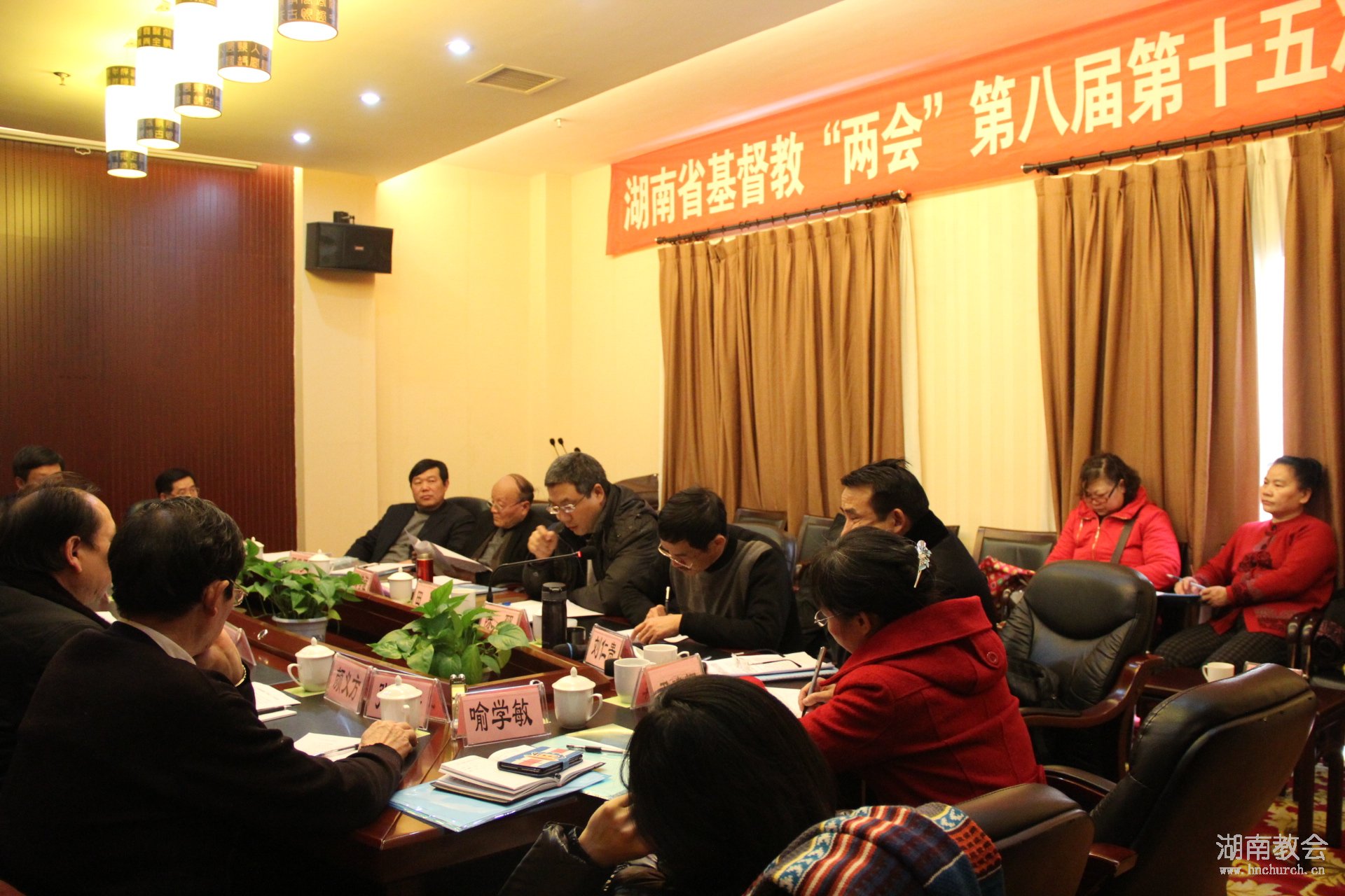 湖南省基督教“两会”第八届第十五次常委会(扩大)会议在长沙召开2013年1月9日下午,湖南省基督教“两会”第八届第十五次常委会在长沙召开,出席会议的常委有:姚增谊、陈郅、罗保罗、龙省蛟、罗云春、尹建辉、周俊宏、陈盛松、李淑珍、符德礼、李先盛、颜义方、张绍宁、鲁颂、蒋新林,姚孟兰、张卫良、覃恩义列席了会议。省基督教协会会长陈郅牧师主持会议,省宗教局二处田野处长、刘仁贵副处长、喻学敏科长莅临会议并作工作指导。