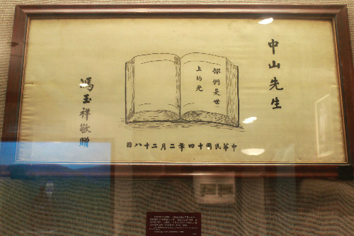 上海市孙中山故居纪念馆馆藏文物中,冯玉祥将军赠送给孙中山的丝质绣品尤为引人注目,绣品主题是:“你们是世上的光。”