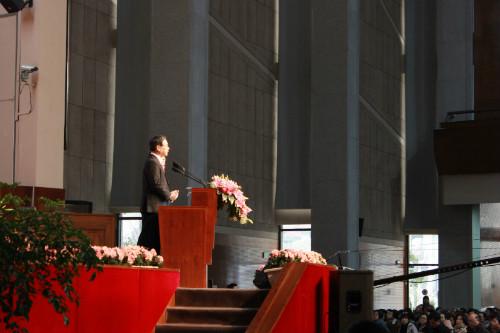 他对崇一堂数千位信徒呼吁,希望被圣灵充满、成为小耶稣、成为见证人,通过教会祝福中国,为国家祷告,为国家的领导人祷告。“我相信神会通过中国的教会在21世纪凸显他伟大的奇迹,而这个使命就会在各位身上。”