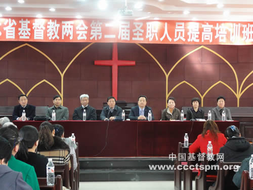 开班仪式由吉林省基督教协会总干事郝云丽牧师主持,全场同唱《一切全献上》,秘书长陈喜和牧师代祷。会长任大中牧师致欢迎词,号召全体教职人员不断学习,成为符合时代需要的高素质、高水平的教职人员,满足今天教会的需要。吉林省基督教三自爱国运动委员会主席孟繁智牧师为培训班开班祝福之后,培训授课正式开始。