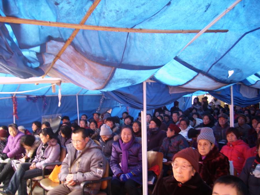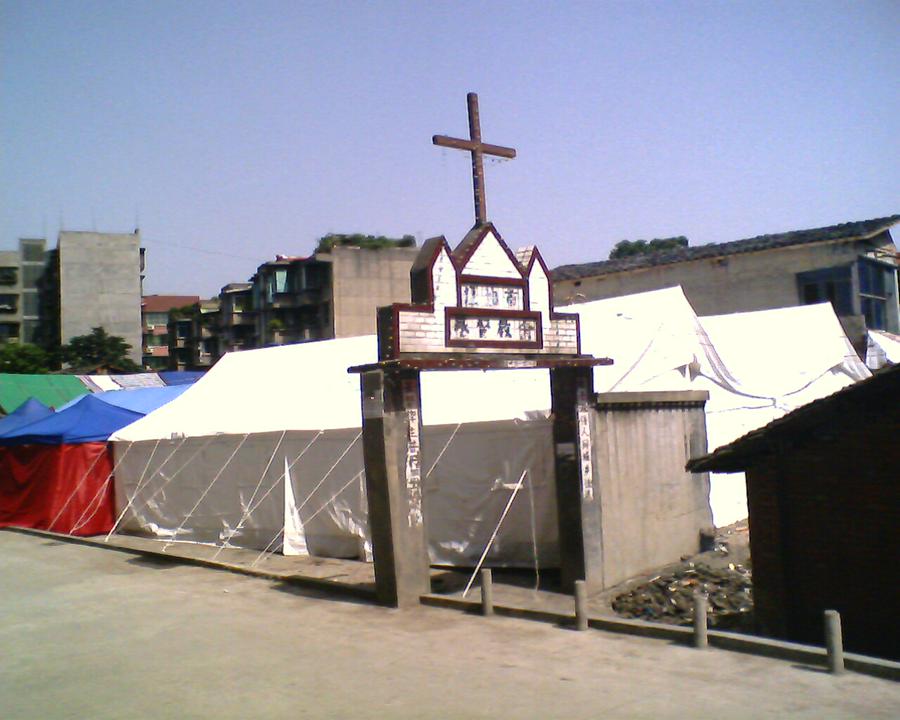 地震后五年来,由于福音堂的重建一直没有完成,福音堂信徒的聚会常常更换场所。最初在美国一些志愿者的帮助下,他们敲平了地面,在原来堂的废墟上搭建了帐篷聚会。一年以后,聚会场所换到了当地一家农家乐,但是时间不长,因为老板称信徒聚会常常搬动桌椅,不愿意再给教会使用,所以又搬到另外一家农家乐;再之后是租用一个饭店的大厅,到现在为止两年多,但是上周主日通知,也不能在那里聚会了。