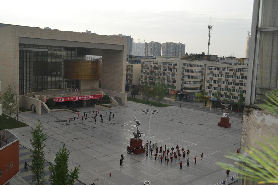 五年之后,当记者走在江油的市区,街旁的大楼都已经重建。江油大剧场打着欢庆五一的横幅,剧场前的广场上,早晚有市民聚集跳舞健身;另一旁是政府大楼,恢弘方正;市中心的百货大楼也是气派非凡。地震的痕迹似乎早已经丢进了历史的尘埃之中。