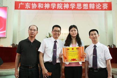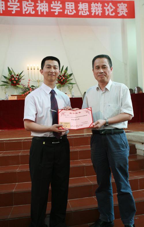 经过两轮初赛的激烈辩论,由胜出的两支代表队——本四队和专三队进入了最后的抉择。他们的辩题是:结合国家宗教局“教风年”建设和省两会关于开展场所“十个有”活动,你认为对义工的培训和建立首先要放在属灵的品格的培养、圣经和神学知识的充实上,还是重点放在技巧和技能方面?,为此问题,各位辩手既有圣经的论据又有教会实践的论证,你来我往,咄咄逼人。经过一番唇枪舌战,最终本科四年级代表队以最高分获得了此次辩论赛的冠军,专科三年级代表队获得亚军,而专科一年级、专科二年级并列季军。最后,各位领导、嘉宾为获奖的各代表队颁发了奖状。