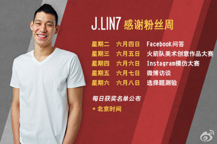 粉丝们可以把自己原创的火箭队美术作品发布到自己的Twitter并@jlin7。优胜五名会获得“Linsanity” 签名电影海报。