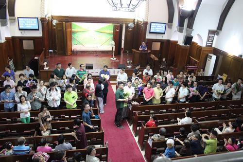 6月28日晚,在上海基督教新恩堂的受浸礼拜中,共有81位弟兄姐妹归主名下。