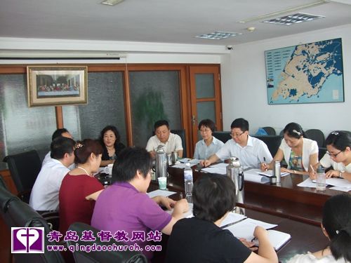 2013年7月26日上午九点三十分,青岛市基督教两会顺利召开了青岛市基督教十届一次常委会议,有14位常委参加会议。市宗教局一处刘处长、王处长应邀出席会议并作重要讲话。会议由市三自爱国运动委员会主任董美琴牧师主持。