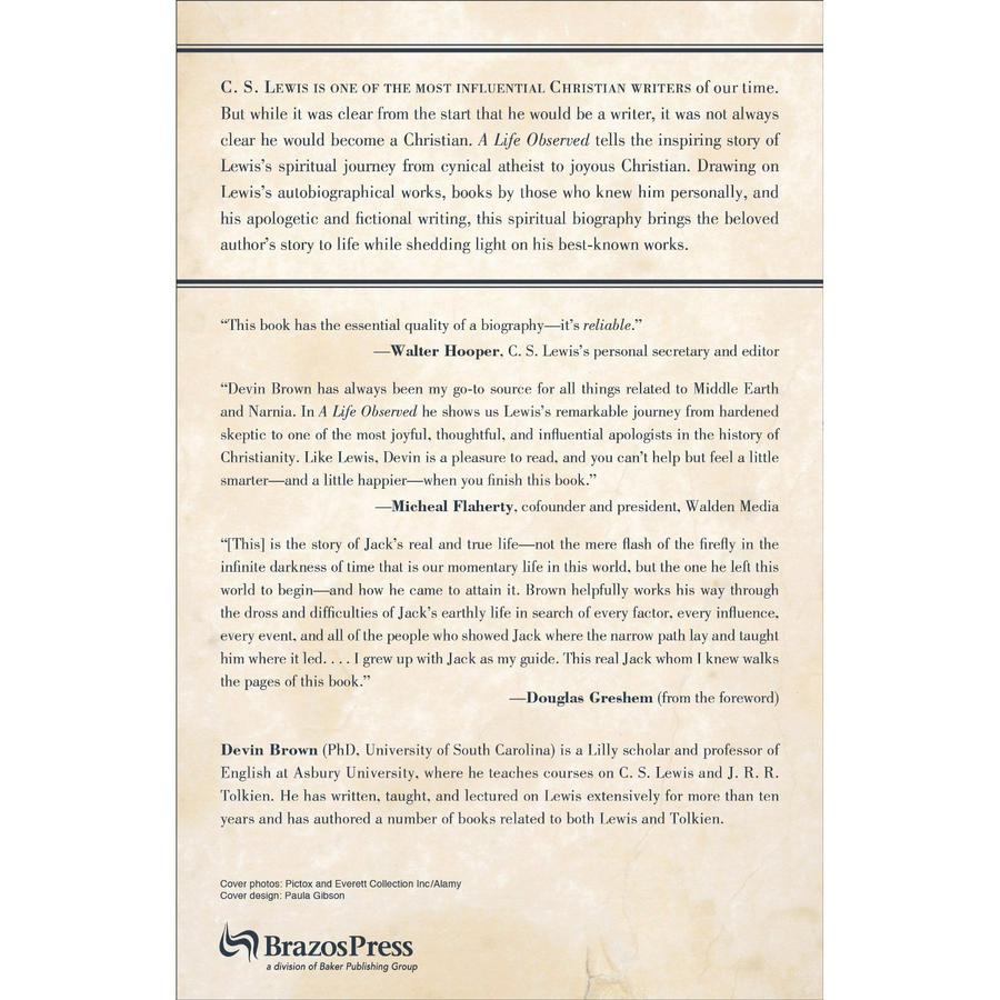路易斯的属灵传记目前只有英文版,题为 A life Observed: A Spiritual Biography of C.S.Lewis。据基督邮报报道,这本书描述了路易斯信主之后彻底的转变,并称只有耶稣才能让这个孤傲的人找到朋友、喜悦及欢笑。
