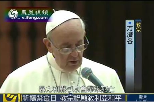 9月7日,教宗方济各为叙利亚和平禁食祈祷一天,当日,他来到梵蒂冈圣彼得广场,没有像往常一样座敞篷车,而是步行进场带领十万信众祈祷。他表示:“暴力和战争只会带来死亡”。