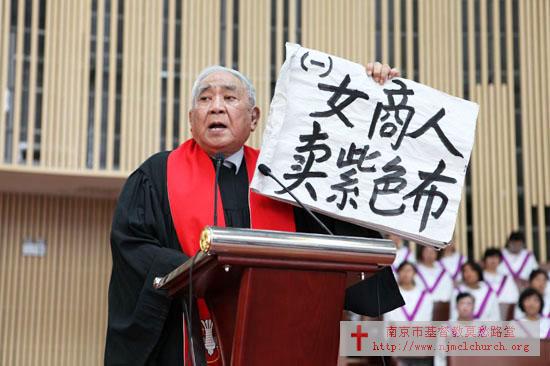 “从1950年在《人民日报》上的‘三自宣言’,提出:自治、自养、自传。这是办好教会的基本方向和方针,体现我们爱国爱教,是有圣经根据和理论的。丁光训主教提出的由‘三自到三好’,就是自治要治好,自养要养好,自传要传好。1998年在济南召开关于‘神学思想建设’的会议,坚持三自,也体现在加强神学思想建设上。南京市基督教两会根据省两会、全国两会的要求,也在神学思想建设方面积极努力,要把神学思想建设落实在讲台上,转化在讲道和牧养的工作当中,实现爱国爱教、荣神益人。”