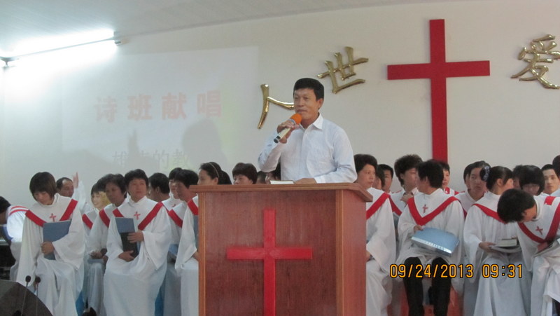 随后,主持人热情地介绍了来自远近各堂点的嘉宾弟兄姊妹,其中有来自慈溪的、临山的、上虞的、更有来自上海的弟兄姊妹。他们都在介绍中一一起立向会场致意。诗班献诗完毕后,市基督教两会会长周元海牧师走到台前证道,他宣讲了奉献的意义,以及上帝丰厚的恩典和报还。台下会众还有众多的老长辈都认真地抬着头细心地聆听。随