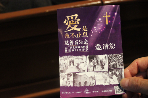 继10月18日晚举办“爱是永不止息”慈善音乐会之后,上海国际礼拜堂于20日上午主日崇拜结束时再次公布捐款总额。公告显示,截至20日上午主日崇拜结束,该堂为广西麻风村筹建西门堂募捐总额为600,166,2元,及港币100元。