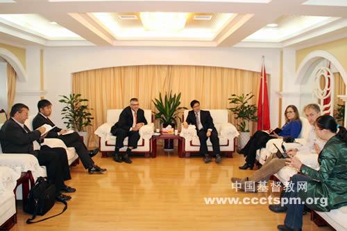 25日上午,客人一行到访陕西省基督教两会,受到省基督教两会同工的热烈欢迎和热情接待。省基督教协会总干事陈鼎亮牧师向客人介绍了陕西省教会的发展情况,以及教会近年来开展的事工,并回答了客人感兴趣的问题。客人一行介绍了美国归正宗教会的发展历史、教堂和信徒的数量、教会牧养方式等相关情况。双方就有关问题进行了交流分享,气氛轻松,交谈活跃。