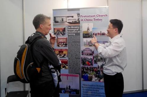 近日,展览现场陆续有来自世界各地的基督徒前往参观,例如印度人、美国人、韩国人等。每当有访问参观时,中国同工为对方介绍中国教会的情况;对方有所提问时,亦一一解答。