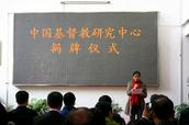 随后,大家移步图书馆二楼“中心”所在地,常务副院长陈逸鲁博士与图书馆负责人刘美纯副教授共同为“中心”揭牌,宣布金陵协和神学院图书馆“中国基督教研究中心”正式成立。