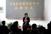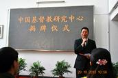 常务副院长陈逸鲁博士代表院领导莅临现场祝贺并发表了热情洋溢的讲话。陈逸鲁博士充分肯定了图书馆近年来在各方面所取得的成绩,对图书馆服务意识的创新思维表示赞赏,指出图书馆在“金陵”的建设和发展过程中的重要作用。陈逸鲁博士说,“中心”的成立是“金陵”发展史上的重大事件,不只是金陵幸事,更是中国教会和中国神学教育的幸事,具有里程碑的意义。他还勉励在场的校友和师生一起努力把“中心”办成中国教界和学界研究中国基督教的中心,成为“金陵”学科的亮点。他还表示将一如既往的关心和支持“中心”的建设和发展,并呼吁在场的校友一道为“中心”的建设和发展尽各自的绵薄之力。