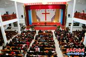 金秋十月,风和日丽,收获季节,喜庆愉悦。十月二十日上午,榆林市府谷县基督教两会在县城阳光小区幸福路上举行了隆重的新堂落成典礼,省基督教两会副主席、副会长、榆林市基督教三自爱国运动委员会主席杨小利牧师,省基督教三自爱国运动委员会秘书长李文斌牧师等等牧长到会祝贺,1200余名信徒怀着感恩的心见证了神的荣耀。在城建教堂顶部举起的用耶稣基督宝血染红的十字架格外醒目,祈愿慈爱的神将他最美的祝福赐予这个城市的信徒和每一个人民。