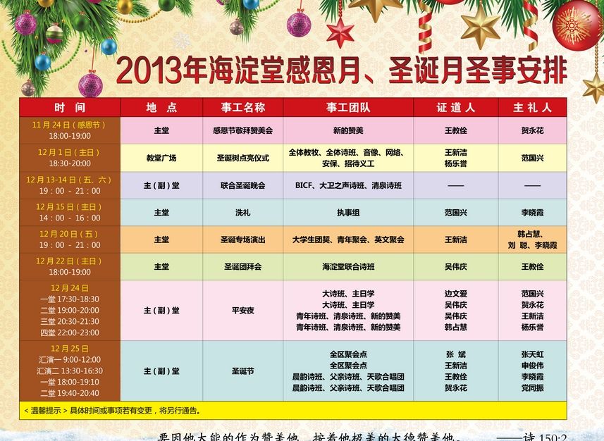 12月13-14日(五、六) 19:00-21:00 联合圣诞晚会