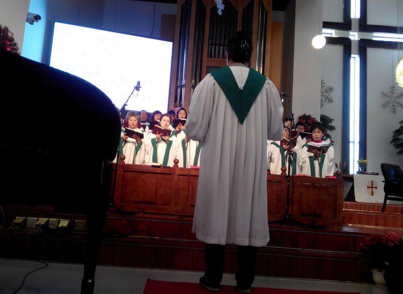 装修一新的朝阳堂稍稍有些改变,给人更加清晰明亮的感受。敬拜开始前,预备献唱的诗班拾级而上、鱼贯而入,坐在专门为诗班预备的位置上,恰可与会众正面相视,赞美的歌声也能更清晰地传遍整个教堂。
