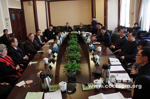 据中国基督教两会网站,中国基督教三自爱国运动委员会主席傅先伟长老,副主席、秘书长(代)徐晓鸿牧师,中国基督教协会副会长、总干事(代)阚保平牧师,副会长单渭祥牧师等接待了来访客人。