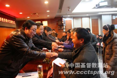 2014年1月15日上午,安徽省“宗教慈善周·双千行动”捐款基督教界集中发放仪式在合肥举行。安徽省基督教两会负责同工为受助老人、学生代表30余人现场发放了扶助款。
