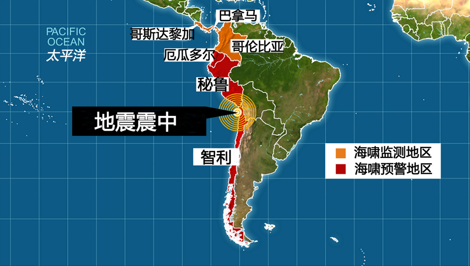 智利、秘鲁、厄瓜多尔发生大地震后,哥伦比亚、巴拿马、哥斯达黎加等拉丁美洲地区国家相继发布海啸预警。