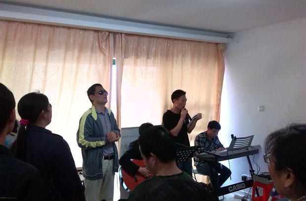 因为从事的是推拿和按摩的职业,需要到处跑,他就一直这么摇摆,后来学会了祷告。因为是一个离过婚的人,常常会觉得孤单,希望神能帮助他。后来神带领他认识了一位香港的姊妹,他们2012年结婚。“我愿意将自己作为活祭献给他。”,彭弟兄随后和一些牧者去过山东传道,后来有了负担,就成立了盲人赞美团。