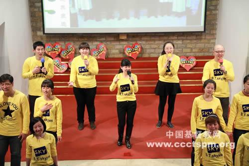 2014年4月11日,黑龙江省哈尔滨市南岗基督教会青年团契成立17周年感恩赞美会中,由团契全体青年同工们带领会众以感恩赞美为祭献给神。