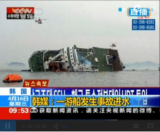 4月16日上午8时58分(北京时间7时58分),韩国一艘载有462人的客轮“岁月”号在韩国西南部海域沉没,9人遇难,287人失踪。韩国多位基督教领袖均积极关注此事,第一时间发出代祷和呼吁。
