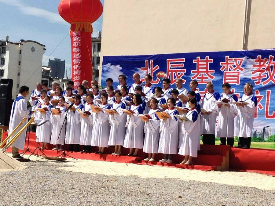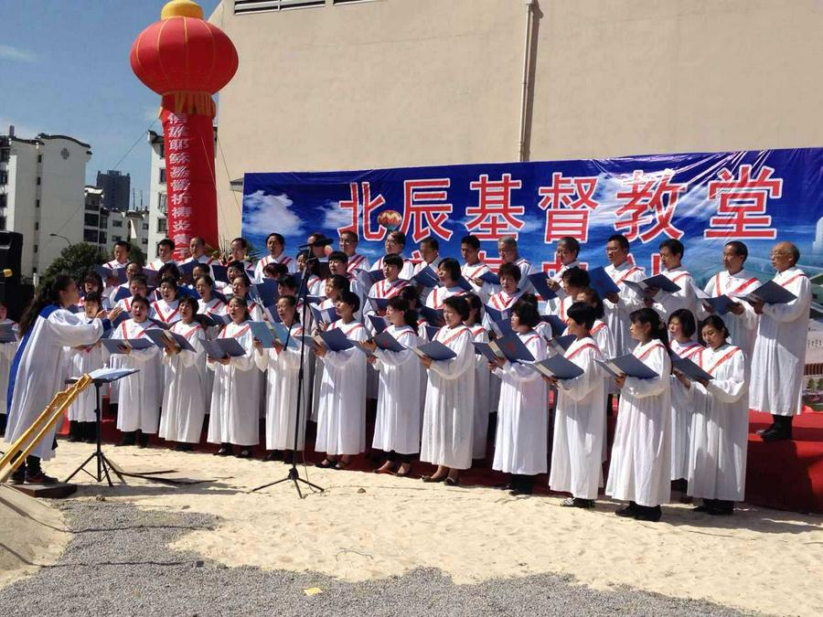 5月16日上午09:00,昆明市北辰基督教堂举行了建设工地奠基典礼,1300多人参加,主要为三一教会和北辰教会的信徒,三一教会、北辰教会和世纪城教会、锡安圣堂的诗班参与献诗。