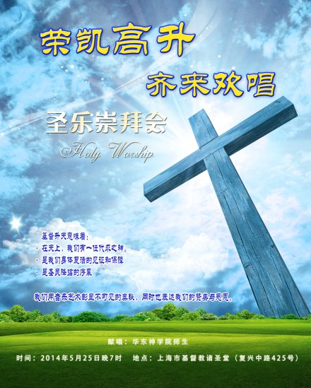 据上海市基督教堂诸圣堂微博消息,这个主日(5月25日)晚7时,华东神学院师生将于上海市基督教堂诸圣堂举办升天节圣乐崇拜,欢迎弟兄姊妹参加聚会。