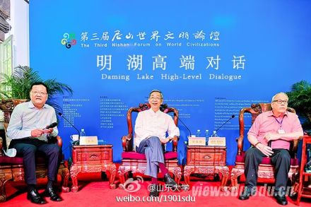 第三届尼山论坛正在进行当中,以“不同信仰下的人类共同伦理”为主题,20上午,举行了第一场明湖高端对话,尼山论坛组委会主席许嘉璐和美国地缘政治学家威廉.恩道尔就“文明对话的共同责任”问题进行讨论,认为人类需要唤醒心中的爱与善。