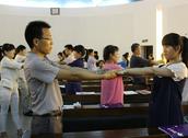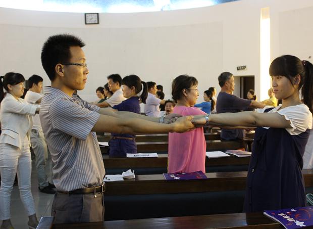 葛老师喜欢用互动的方式教学,她认为体验式的学习效果更好。在聚会中,她带大家做了一个小测验和一个小游戏。她让大家双手平伸用力向后伸展,之后问大家有何感受,结果大多数人说没什么感觉。接着,她让大家又做了一次,在做的时候要憋气,并且体会心脏的感受。结果还是有人说没感觉,有的人说挺舒服的,有的人说感到胸闷。通过这个小测验,老师感觉到大家的感受能力出于低的水平,因为正常来说,这样做是会胸闷的。