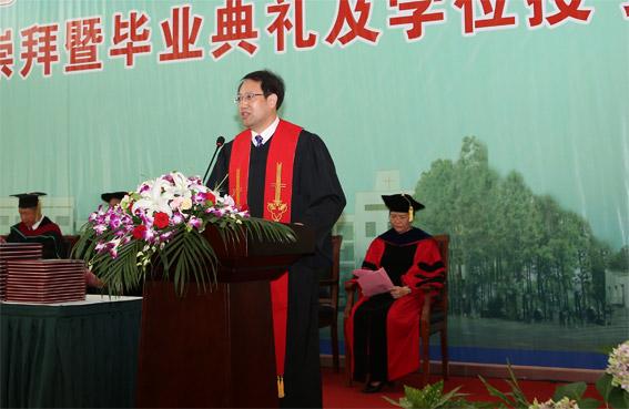毕业典礼上,中国基督教三自爱国运动委员会主席傅先伟长老为毕业生做毕业劝勉;中央统战部二局四处处长倪智泉劝勉毕业生要按照三自原则办好教会。