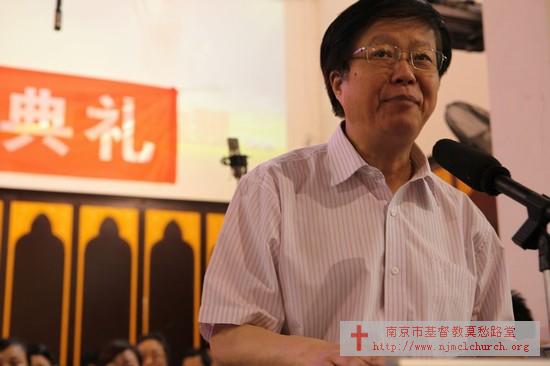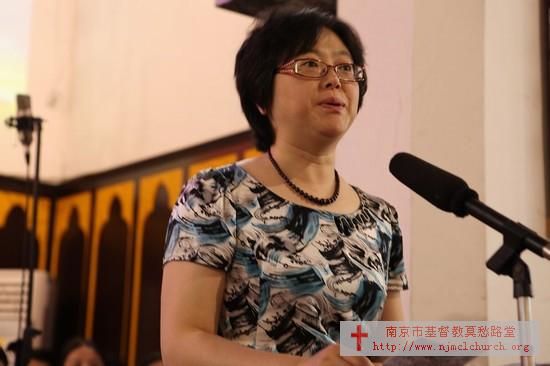 江苏省宗教局杨处长致贺辞,她表示这样的规模和数量的按立,在江苏省两会是史无前例的,在今后也不会很快再次出现,并认为这一举措解决了目前基督教羊群多、牧羊人少的现状,对江苏省各个市、县、区的教牧人员的按立工作起到了示范作用。