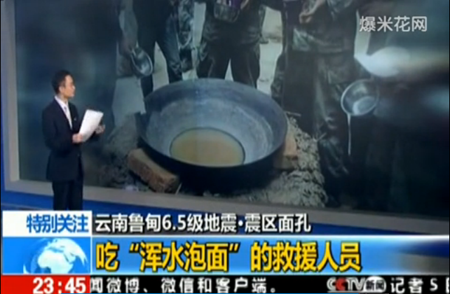 截至8月6日,云南鲁甸6.5级地震已致589人遇难。灾难面前,灾区人民和救援官兵的生活供给状况是全国人民十分关切的问题,为了让大家了解救灾一线的状况,各大媒体滚动播报救灾现场,然而