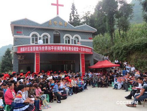 近日,30余个教会2000多信徒共聚一堂,庆祝贵州毕节市纳雍县维新镇咪布教会举办教会建立一百周年,同时举行的还有2014年世界和平祈祷及小花苗族教会一年一度的灵歌飞扬赞美会。