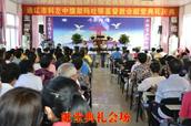 当天,来到献堂典礼的弟兄姊妹把教堂坐得满满的,现场有300多人。教堂里里外外都洋溢着一片喜乐的气氛。教堂门口拉着一幅对联——诸天诉说神的荣耀,穹苍传扬他的手段;旁边还挂满了五颜六色的小旗。