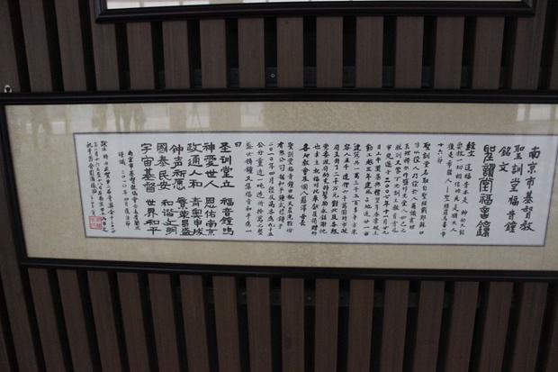 “圣训堂立,福音钟鸣;神爱世人,恩佑南京;政通人和, 青奥申成;钟声祈愿,繁荣昌盛;国泰民安,和谐文明;宇宙基督,世界和平”,这首短诗深切表达了南京市基督教界人士对于祖国和世界的美好祝愿。