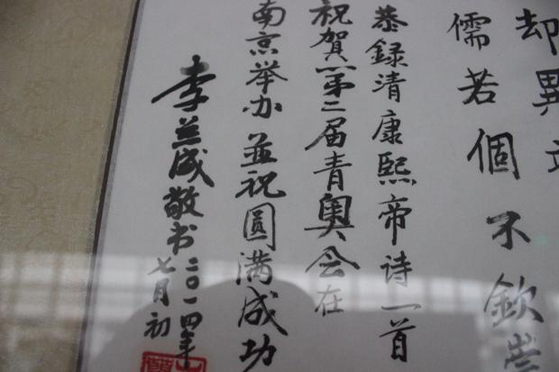 8月10日,为了迎接南京青奥会,圣训堂于副堂长廊举办“迎青奥,颂主名”书画摄影作品展。据圣训堂主任牧师李兰成介绍,这次作品展从6月开始筹办,除了一些著名的书法家和摄影师基督徒参与外,大部分来自于教会信徒。这里面记录了圣训堂自建成之后的点点滴滴,同时也寄予了基督徒对于南京青奥会成功举办的美好祝愿。