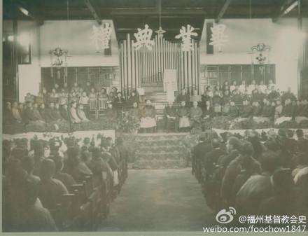 图片中的“刘公纪念堂”正是观巷教堂的前身。据介绍,刘公纪念堂是美国公理会在福州创建的第二座教堂,也是公理会闽北教区以及1927年以后的中华基督教会闵中协会的总堂。