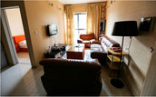 房间采用现代简约风格装修,室内沙发、茶几、电视、电话、冰箱,宽带WIFI一应俱全。对长期在本酒店入住的客人还配备了厨房用品,让出门在外的您,也可以享受到自己烹制的美食佳肴。