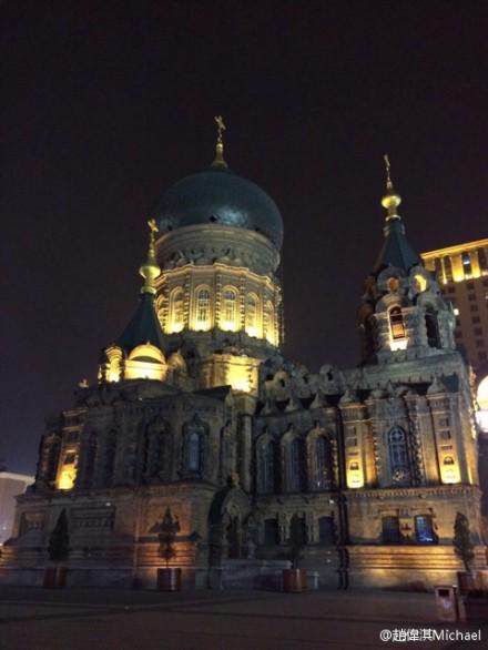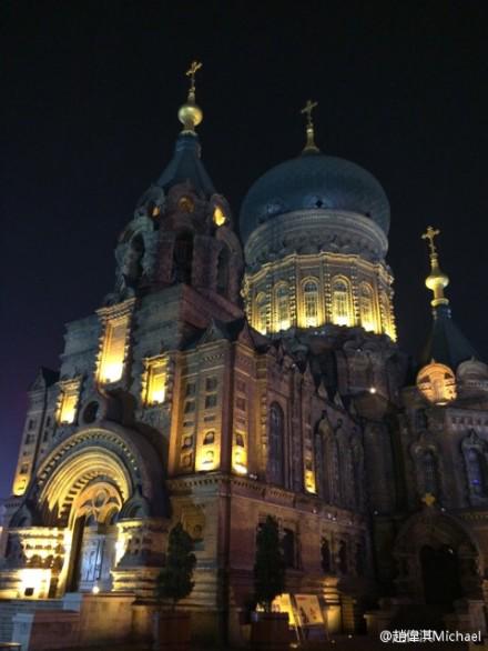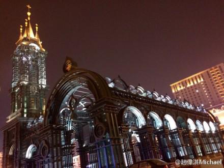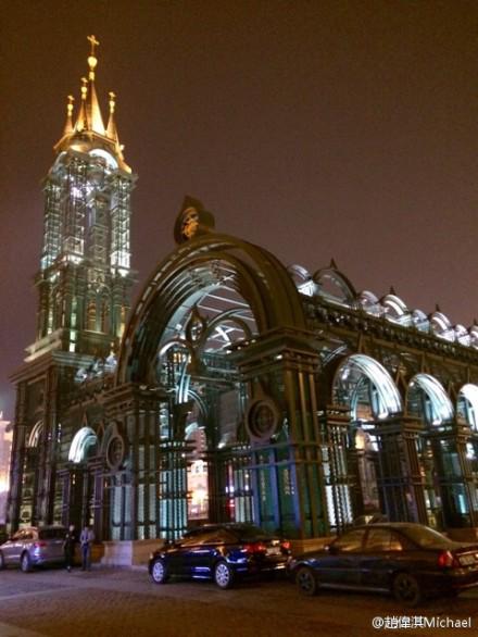 近日,基督徒艺人赵伟淇在其新浪微博中分享了一组该教堂的夜景。