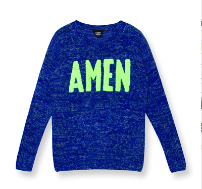 Amenpapa是一个触动心灵的服装,我们坚持每一件衣服都有自己的故事。我会用三个形容词来形容我们的风格:大胆(Bold)、好玩(Playful)、有灵魂(Spiritual),是触摸心灵的一个风格。我们秋冬系列的主题是回归小孩:Call Out Your Child Spirit 呼唤孩子的心。我看了一个研究,说我们大人每一天只笑3-4次,但四岁小孩子却能笑300-400次。所以我想我可以用我们的系列去鼓励我自己跟其他人去回归小孩。